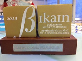 Esan bezala, urrezko Bikain ziurtagiria jaso zutenen artean Juan Mateo Zabala euskaltegia dago.