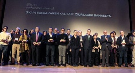 Iñigo Urkullu Eusko Jaurlaritzako lehendakariak Bikain Euskararen Kalitate Ziurtagiriak banatu zituen atzo (2013-12-17), Bilboko EITBren egoitzan egindako ekitaldian. Orotara 36 erakundek jaso dute ziurtagiria aurten; horietatik 9k goi-mailako urrezko Bikain egiaztatu dute; 16k tartekoa den zilarrezkoa; eta 11k oinarrizkoa. Kanpo-ebaluazio horiek Bikain Ebaluatzaileen Klubeko 113 kidek burutu dituzte.300 pertsonatik gora elkartu ziren Bilboko EITBren egoitzan, 19:00etan hasita egin zen Bikain Euskararen Kalitate Ziurtagirien banaketa ekitaldiaren 6. edizioan. Eusko Jaurlaritzako lehendakariarekin batera, oholtzan Cristina Uriarte, Eusko Jaurlaritzako Hezkuntza, Hizkuntza Politika eta Kultura sailburua; Patxi Baztarrika, Hizkuntza Politikarako sailburuordea; eta Asier Aloria Confebask-eko formazio zuzendaria izan ziren. Atzo arratsaldean Bilbora bertaratu ziren, besteak beste, Bikain Ziurtagiria eskuratu duten erakundeetako ordezkariak, Ebaluatzaile Klubeko kideak, enpresaburu zein kooperatiba elkarteen goi-ordezkariak, euskal kulturgintzako ordezkariak, eta baita administrazioetako, alderdi politikoetako nahiz sindikatuetako ordezkariak ere.