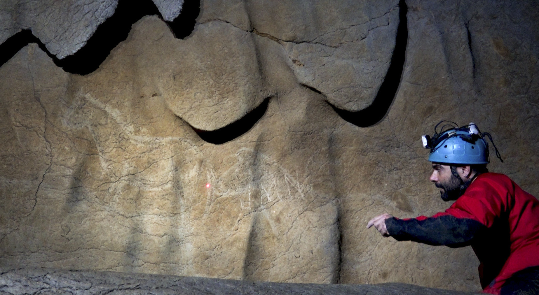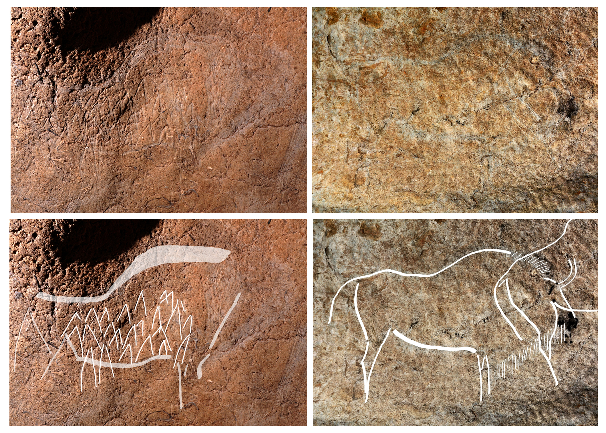 Pozak zoratzen jarri ginen, eta une horretan panelari begira lurrean etzanda nengoela, karburoa zela uste genuen hori egiatan lerro beltza zela ikusi genuen grabatu bat errepasatzen zuena. Orduan ikusi genuen animalia irudiak grabatuz eta ikatzez errepasatuak zeudela.